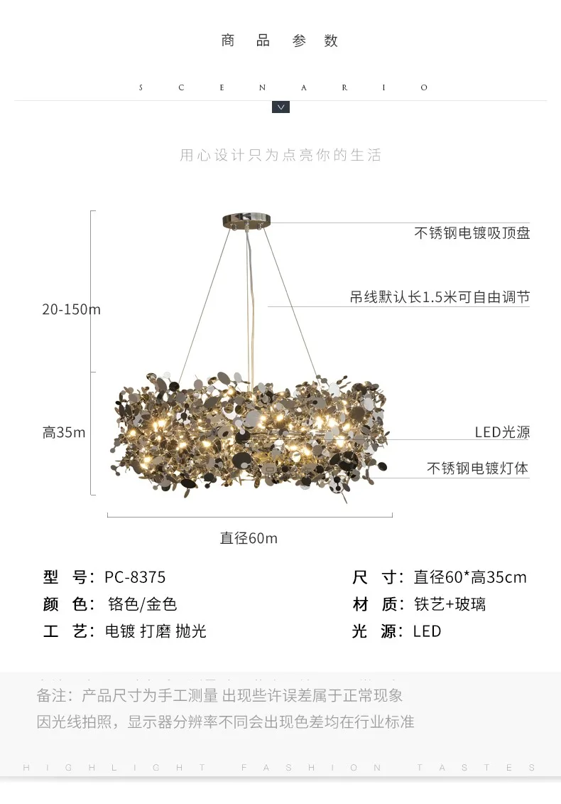 Personality Sequin Chrome Chandelier Bar Lamp Industrial Suspension Luxury Chandelier Lighting Modern Living Room Decoration